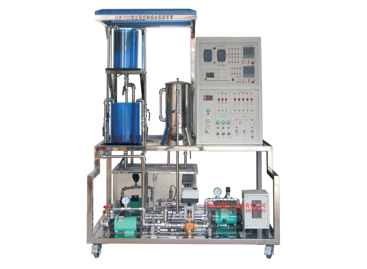 ZLW-P22型过程控制综合实验装置由两路供水系统、双容液位实验系统、流量实验系统、压力实验系统以及温控实验系统组成。配置了AI智能仪表, DDC远程数据采集模块,PLC可编程控制模块,Honeywell电动调节阀,变频器,可实现系统参数辨识,单回路控制,串级控制,前馈-反馈控制,比 值控制等多种控制形式。
