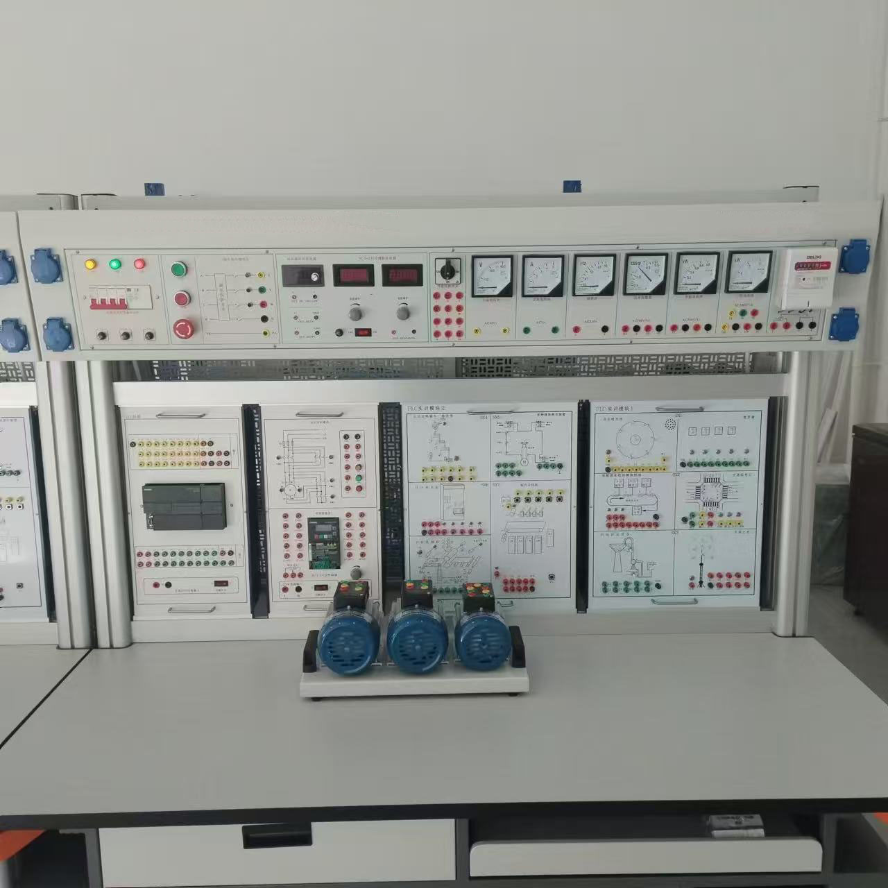 高级电工考核实训装置,高级电工考核实训设备,高级电工考核实训台主要服务于电力系统自动化技术、机电设备运行与维护、电气自动化技术等多个专业的《机床电气控制》、《维修电工》、《汽车电工电子技术》、《电机拖动》、《电气控制》等课程的教学实践工作与维修电工的技能考核,并且为电力系统自动化专业、机电设备运行与维护等专业提供岗前综合实训服务。
